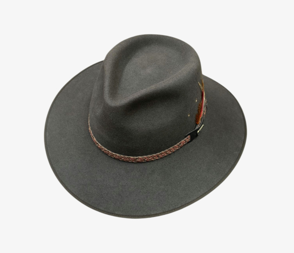 The Akubra Tablelands - Bran Olive is a versatile, stylish choice for both country and town living. Designed for practicality and comfort, this genuine Australian hat features a distinguished pinch crown, a medium dipping brim with a smart bound edge, and a laced hatband for a traditional touch. Built with breathable eyelet vents and crafted from Akubra’s legendary fur felt, the Tablelands is rugged enough for rural life yet refined enough for city streets. Unlined for a lightweight feel, it's perfect for all-day wear in various conditions.